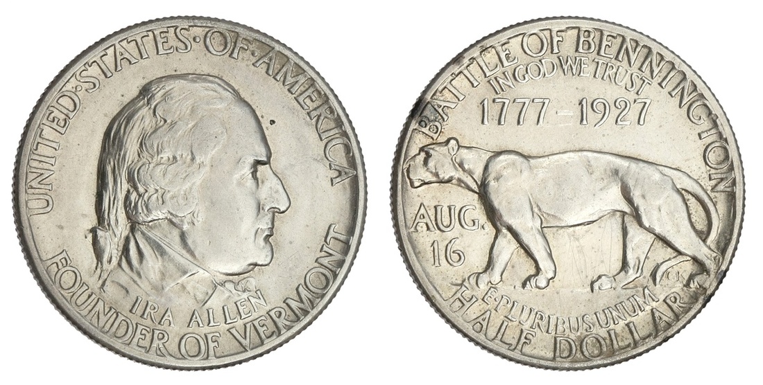 1927 Vermont Silver Half Dollar Commemorative, Almost Uncirculated.