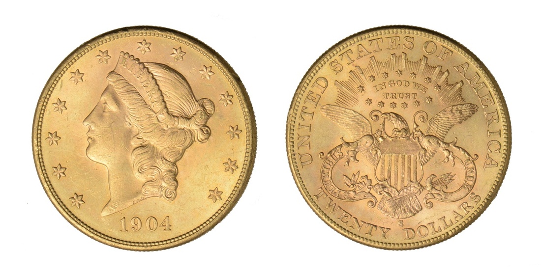1904-S $20 Liberty. Choice Brilliant Uncirculated.