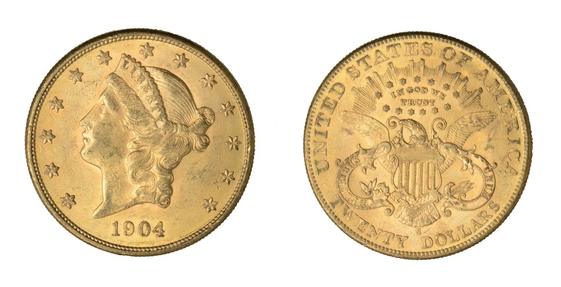 1904-S $20 Liberty. Brilliant Uncirculated.