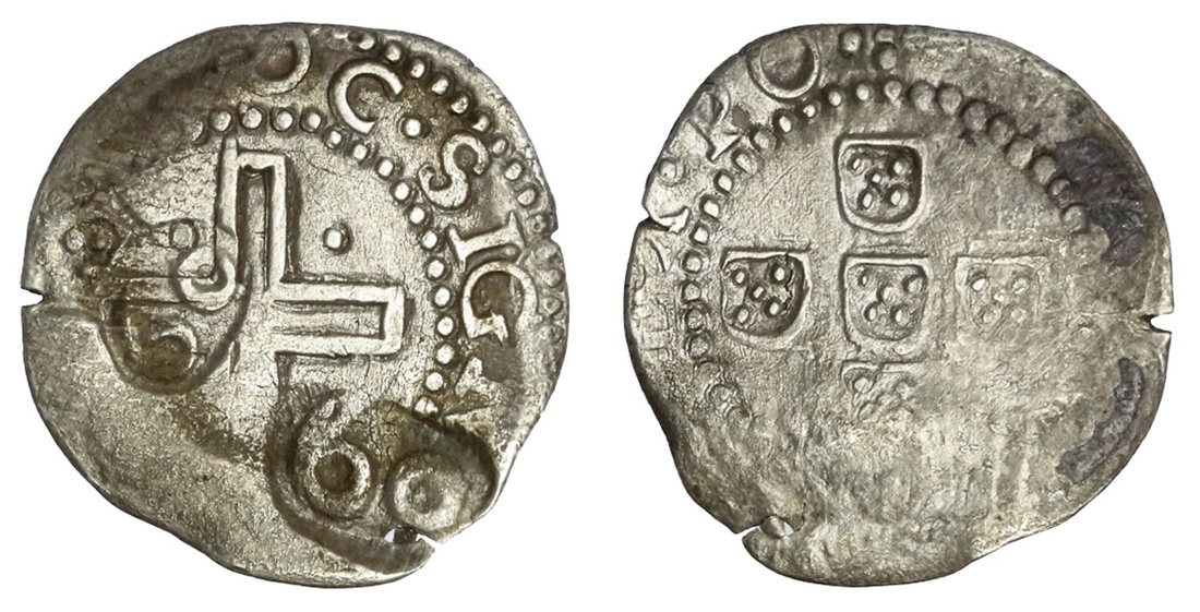 Brazil. Afonso VI (1656-1667). Countermarked Coinage. 60 Reis (1663). 2.77 gms. Type IV crowned "60" c/m on a Portuguese (1642) 60 Reis which was c/m on a ½ Tostão of Filipe III. Cf.KM 420.1 (for earlier c/m) and KM 16 (for host). Rare combination. Very Fine.