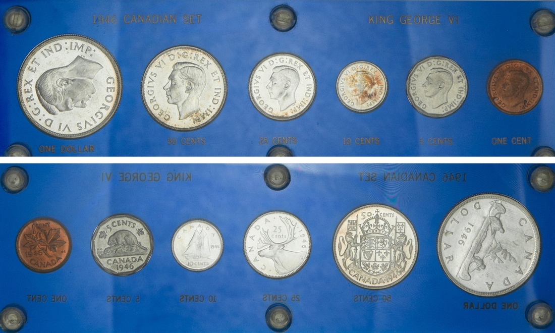 Canada. George VI (1936-1952). 1946 Mint Set. Cent to Dollar. In custom lucite frame. Choice Brilliant Uncirculated.