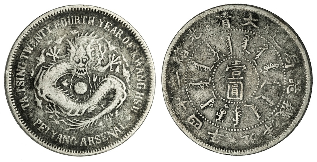 China. Imperial. Chihli Province. Dollar, year 24 (1898). Chinese and Manchu legends around value, rev. Facing dragon. Y.65.2. Grainy surfaces, reverse pinscratches. About Very Fine details.