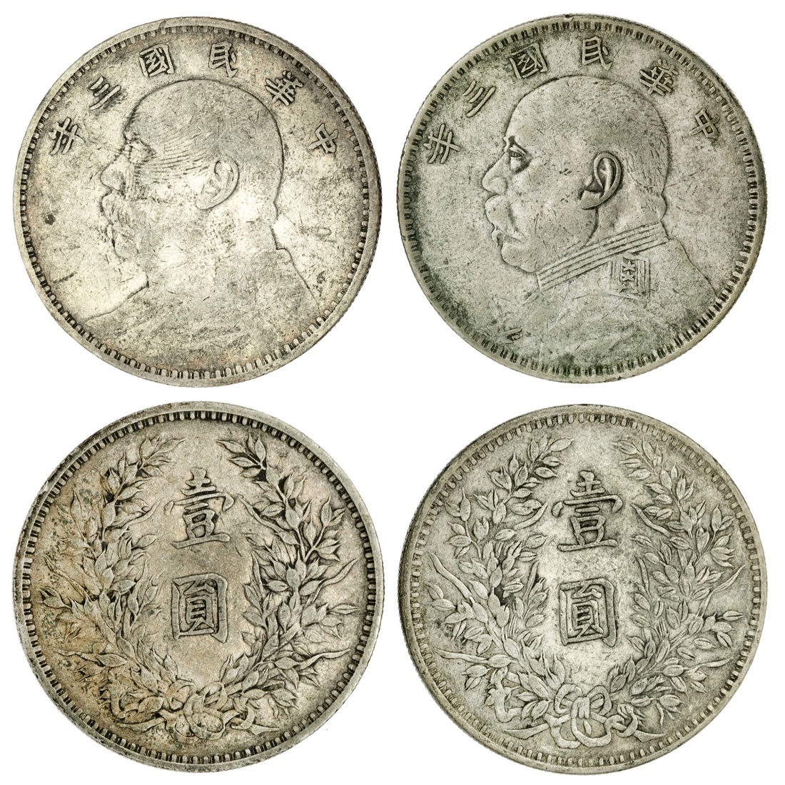 China. Republic. Pair of Year 3 (1914) Dollars. Yuan Shih-kai. Y.329. Fine and Very Fine. (2)