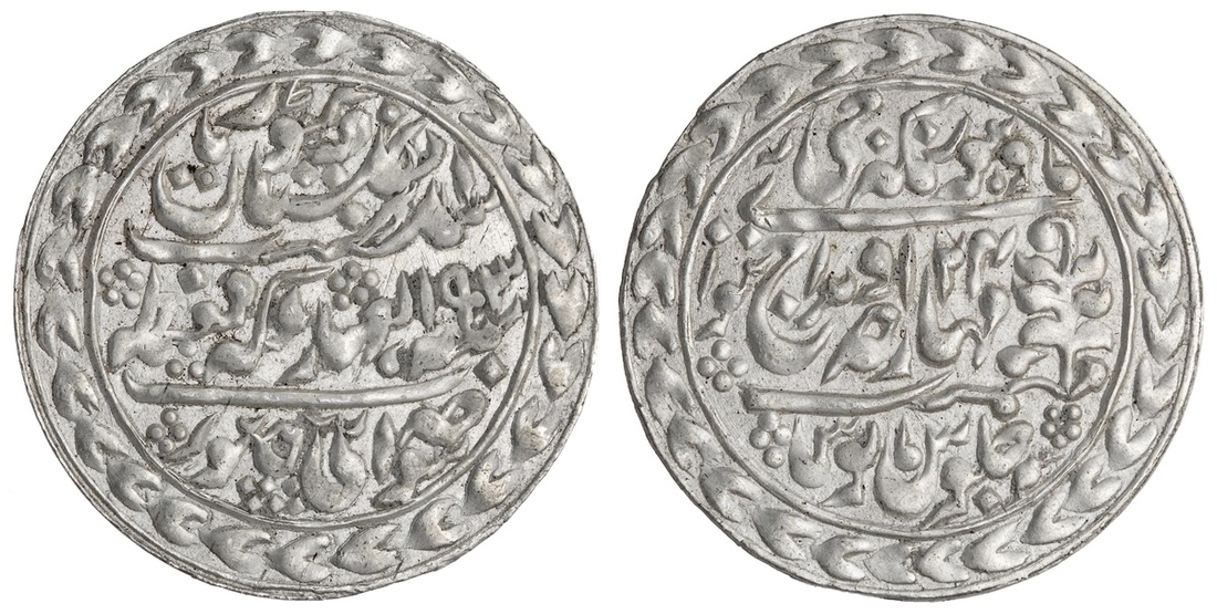 India. Princely States. Jaipur. Madho Singh II (1880-1922). Nazarana Rupee, 1903, year 24. In the name of Queen Victoria. Jhar on reverse. KM 147. Extremely Fine. Ex Sidney W. Harl and Kenneth W. Harl Collection.