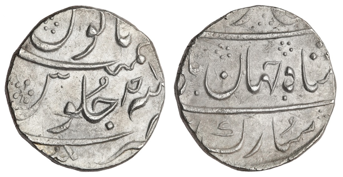 India. East India Company. Bombay Presidency. Rupee, Mumbai AH 1131 year one. In the name of Shahjahan II. KM 160. Extremely Fine. Ex Sidney W. Harl and Kenneth W. Harl Collection.