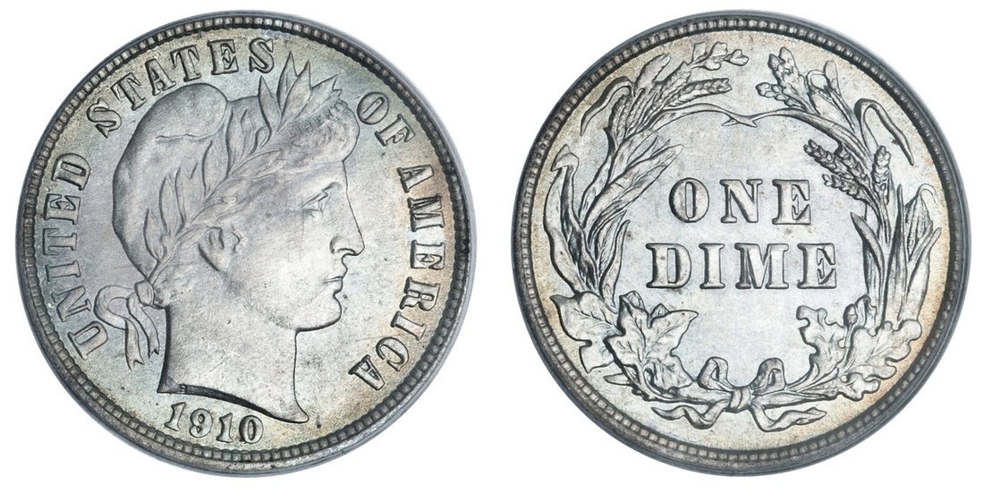 1910 Barber Dime. PCGS MS 64.