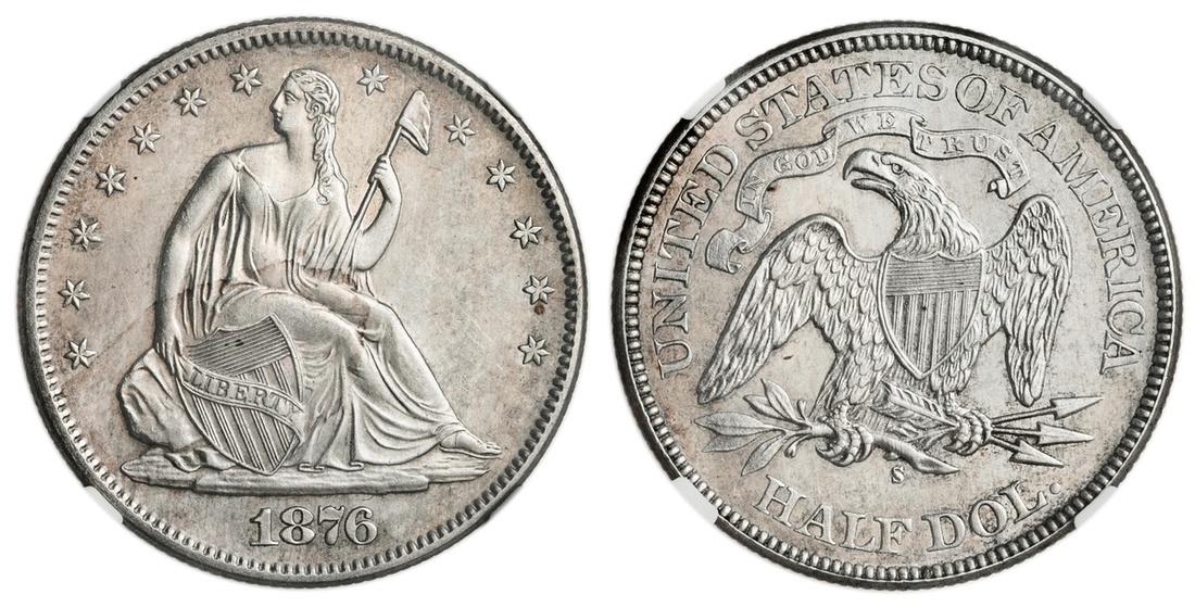 1876 S Liberty Seated Half Dollar . NGC AU Details, cleaned.