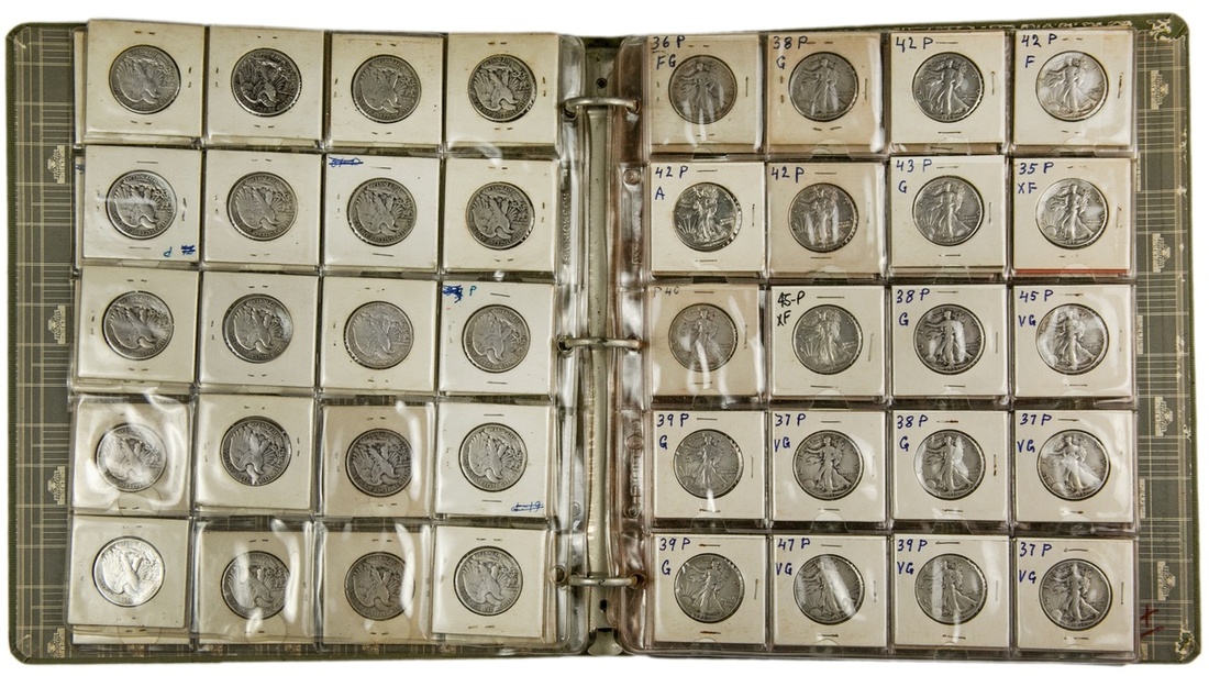 Binder of Liberty Walking Half Dollars, 1917-1947. A variety of dates ranging from 1917-1947. Included in lot: 1917-S, G; 1918-S, G; 1929-S, VG; 1939, VG; 1943, F; 1946, F; Generally Good- Very Fine. [102]