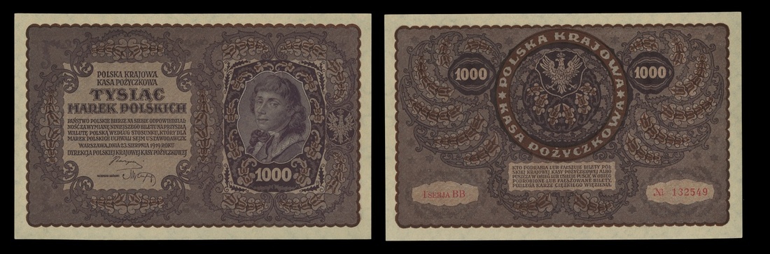Poland. Polska Krajowa Kasa Pozyczkowa. 1000 Marek. 1919. P-29. Kosciusko portrait at right. Uncirculated.