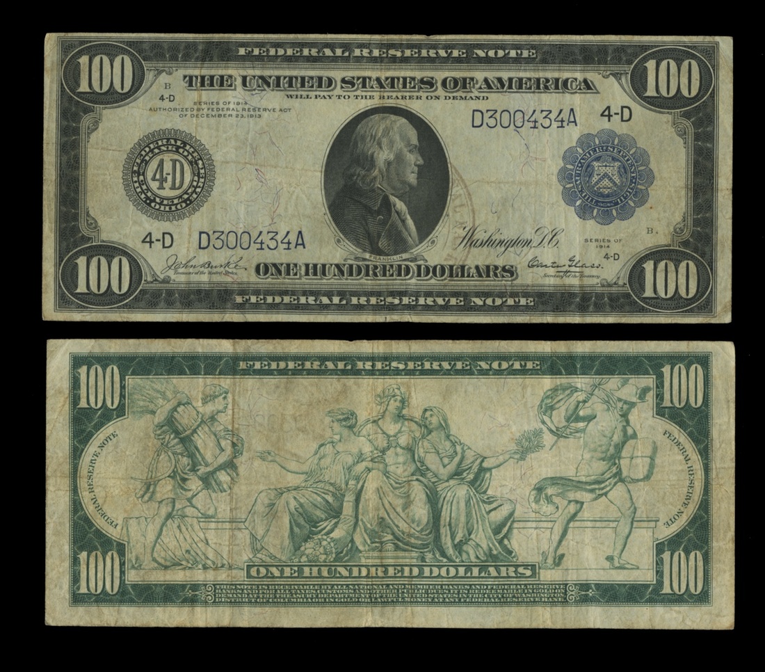 Fr. 1097 $100 Federal Reserve Note. Series of 1914. Cleveland. Burke and Glass. No. D300434A. Fine.