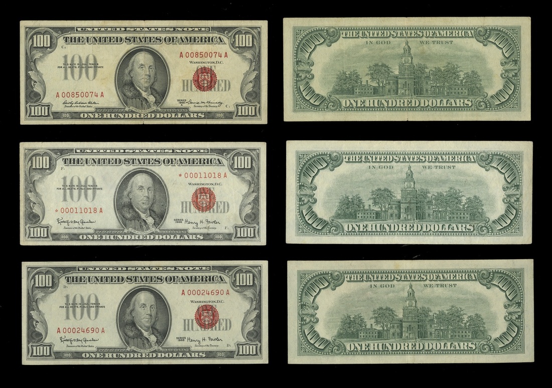 1966 $100 Legal Tender Notes Complete Type Group. 1966, 1966*, 1966A. Fr. 1550, 1550*, 1551. EF, VF washed, and VF. [3]