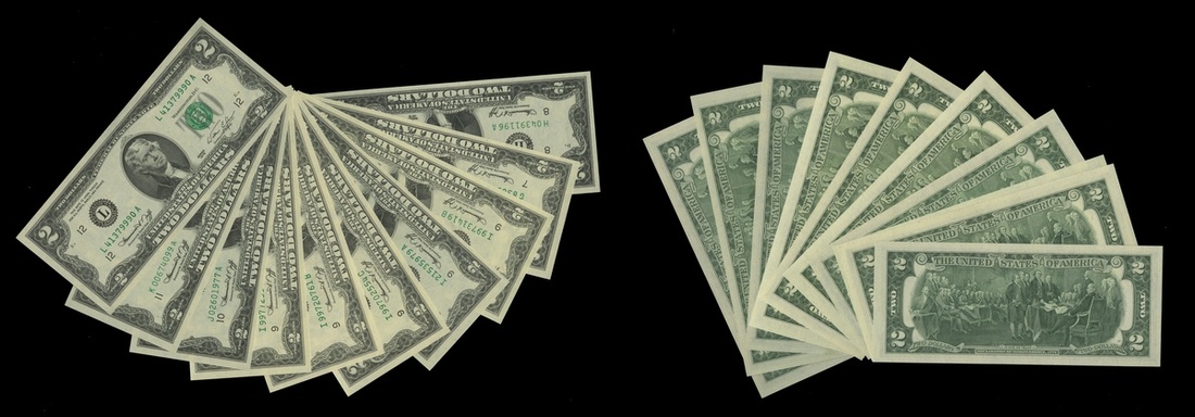Fr.1935A-L. $2 Federal Reserve Notes. 1976. Complete regular issue District Set with some duplicates. A, B (3), C, D, E (2), F, G (2), H, I (5), J, K, and L. Crisp Uncirculated. [20]