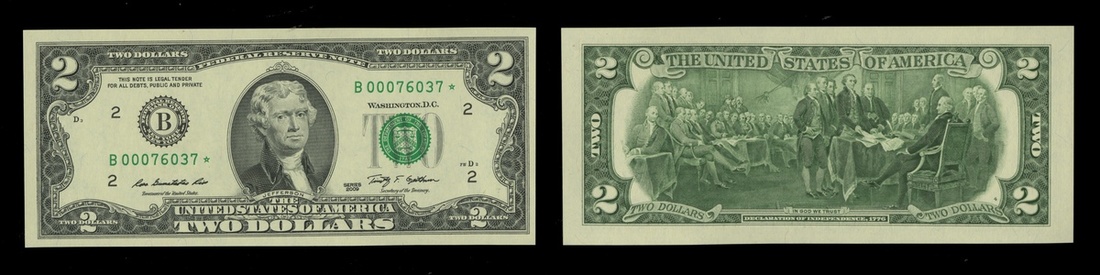 Fr.1939B*. $2 Federal Reserve Note. 2009. New York. No. B 00076037*. Very scarce. Crisp Uncirculated.