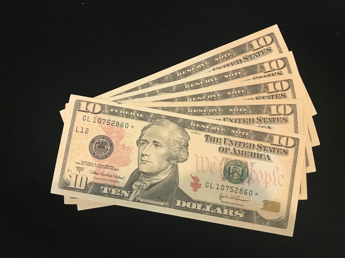 Lot of 2004A $10 Federal Reserve Notes. Includes: A (2), A* (3), B (6), C (2), D (2), E (2), F (2), G (6), G* (2), H (3), I (2), J (2), K (2), L (5) and L* (16). One with number inked on front, a few VF-AU, but generally Crisp Uncirculated. [57]