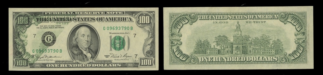 Error 1981 $100 Federal Reserve Note. Offset Transfer. Chicago. About 1/3 back inked on front. AU.