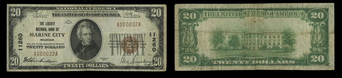Michigan. Marine City. Ch. 11260. Liberty National Bank of Marine City. $20. 1929 Type I. No. A000032A. Fine.