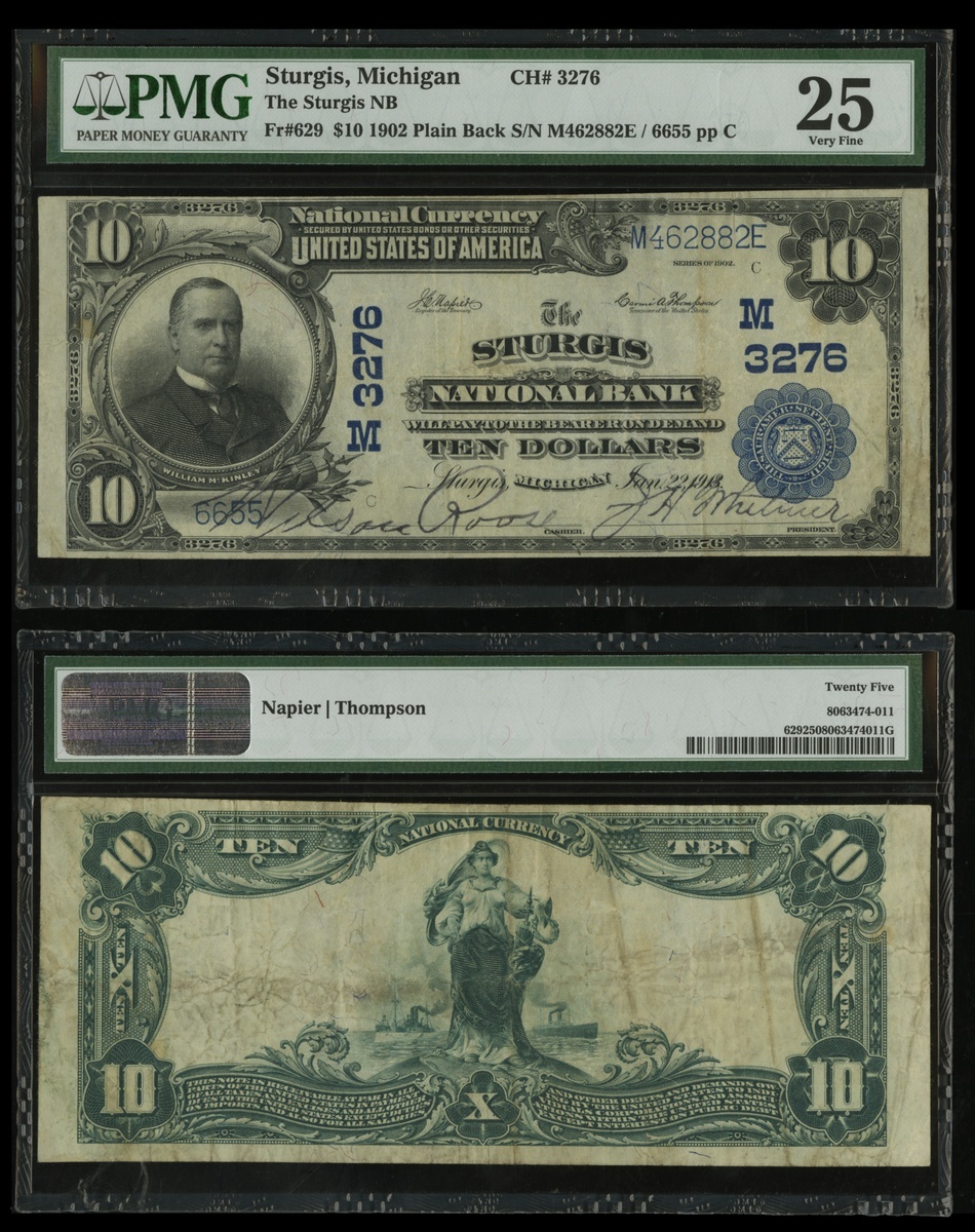 Michigan. Sturgis. Ch. 3276. Sturgis National Bank. $10. 1902 Plain back. Fr. 629. No. 6655. PMG Very Fine 25.