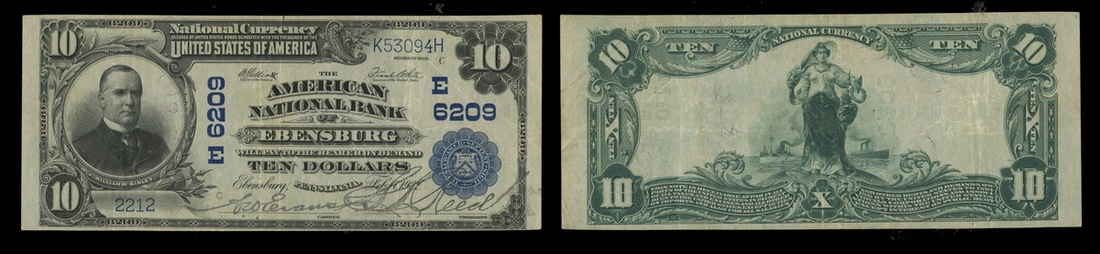 Pennsylvania. Ebensburg. Ch.6209. American National Bank. $10. 1902. Fr.634. No. 2212 / K53094H. Very Fine.