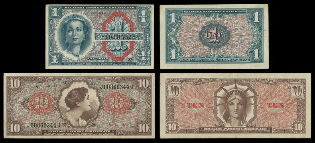 Pair of MPCs: $1, Series 611. S.875; and $10, Series 641. S.887. Good EF. [2]