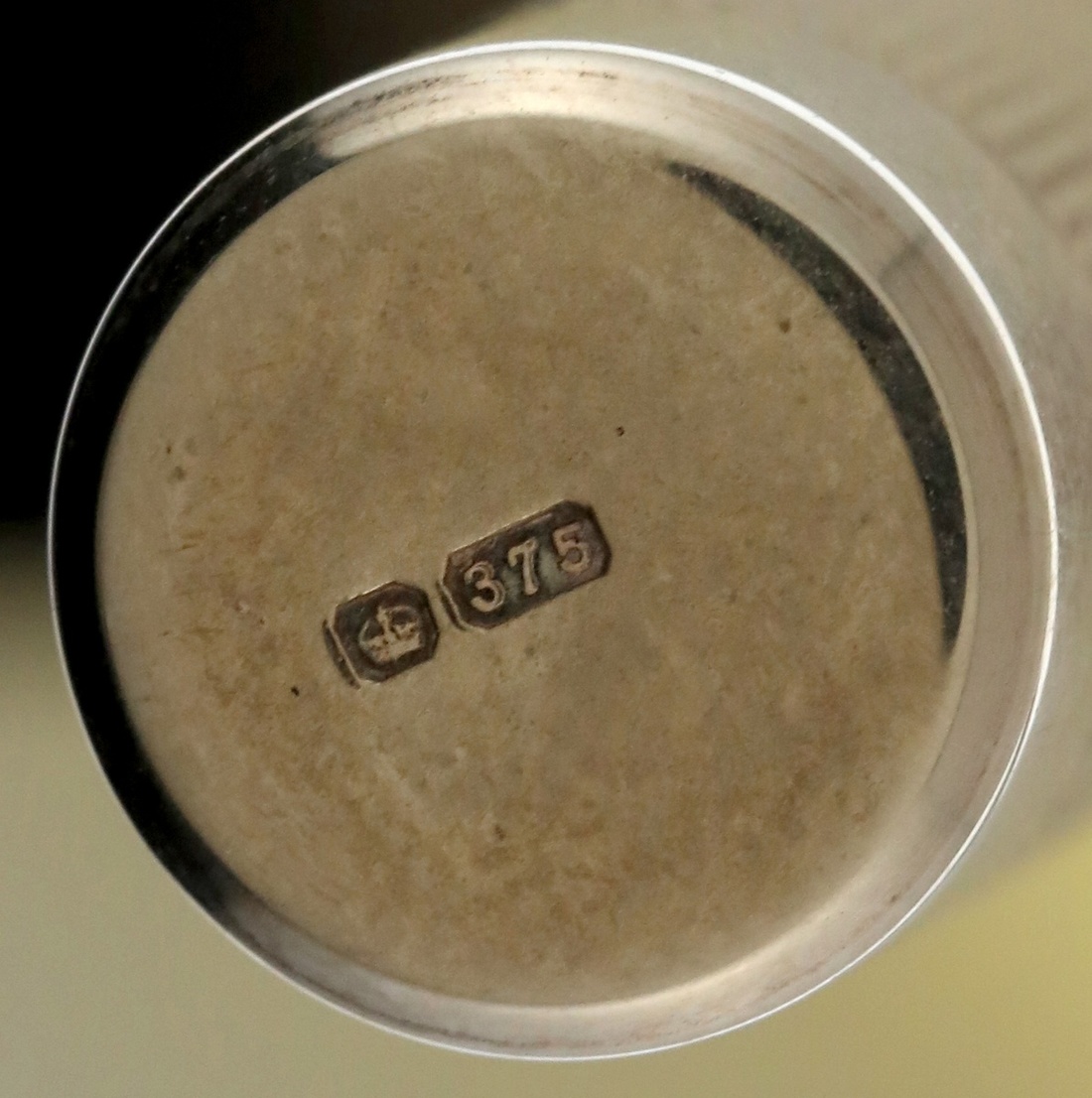 Gold Magnifying Glass. 9K. By Garrard & Co., London, ca. 1970's. 7" length. In original Garrard & Co. case. Hallmarked "crown" "375" on handle, and maker's mark, assay and 375 marks on rim. Handle: 19 gms. Aggregate weight: 6.3 oz.