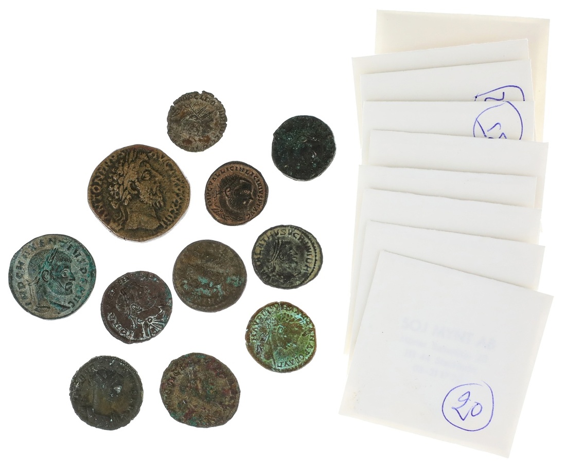 Lot of Roman AEs. 3rd-4th Century, various. Also one Sestertius of Marcus Aurelius, a Provincial AE and a barbarian imitation. About VF-EF. (22)