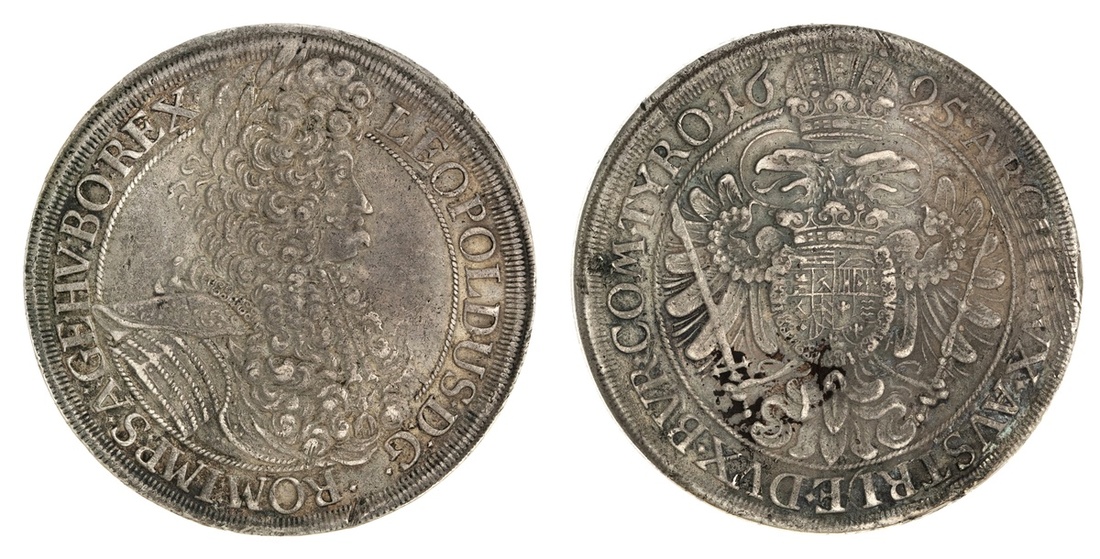 Austria. HRE Leopold I (1657-1705). Taler, 1695. Vienna. Laureate, armored and peruked bust right, rev. Imperial eagle. Dav.3229A, KM 1275.4. Filing or adjustment reverse periphery, light deposits. Extremely Fine.