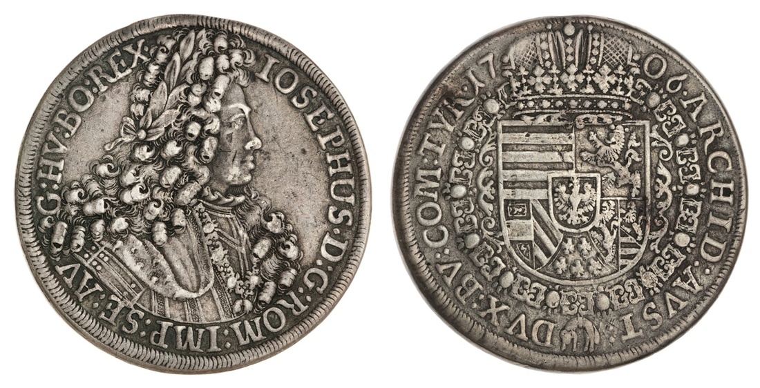 Austria. Joseph I (1705-1711). Taler, 1706. Laureate, armored peruked bust right, rev. Crowned Arms within Order chain. Dav.1018, KM 1438.1. Toned About EF/VF.