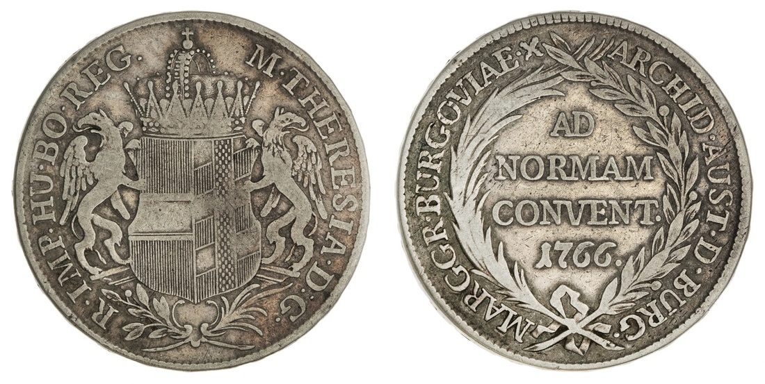 Austrian States. Burgau. Maria Theresa (1740-1780). Taler, 1766. Crowned, supported Arms, spray below, rev. Convention legend and date within wreath. Dav.1148, KM 16. Very Fine.
