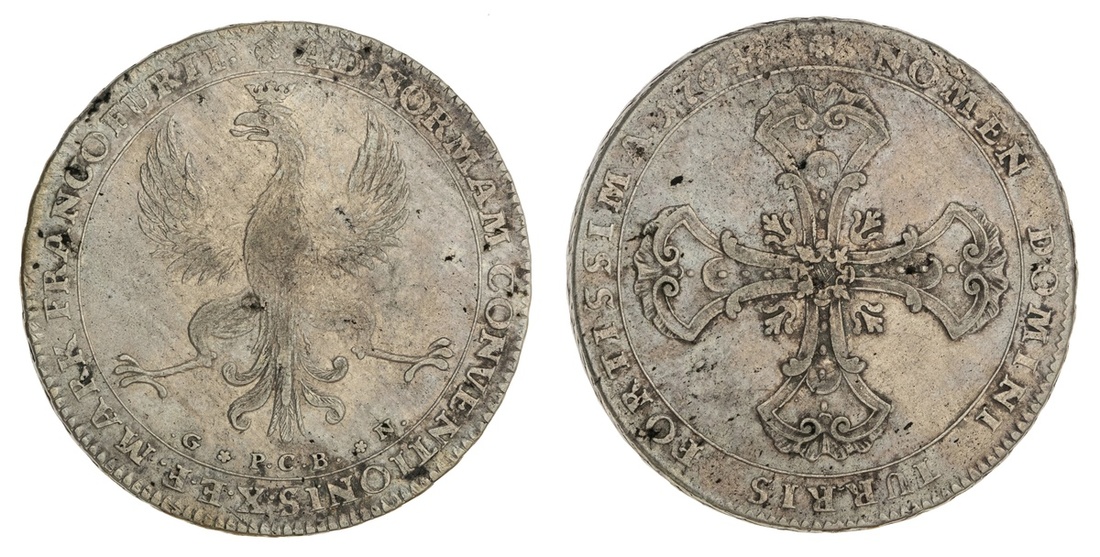 German States. Frankfurt. Freie Reichsstadt. Taler, 1764 G. PCB.N. Crowned Franconian eagle, rev. Ornate cross. Dav.2223, KM 234.2. Toned over small obverse scratch. Very Fine.