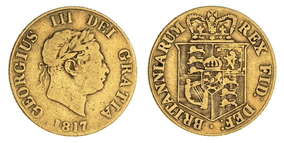 Great Britain. George III (1760-1820). Last or New Coinages. Half Sovereign, 1817. Laureate head right with short hair, rev. Crowned shield. S.3786, KM 673. VG-Fine.