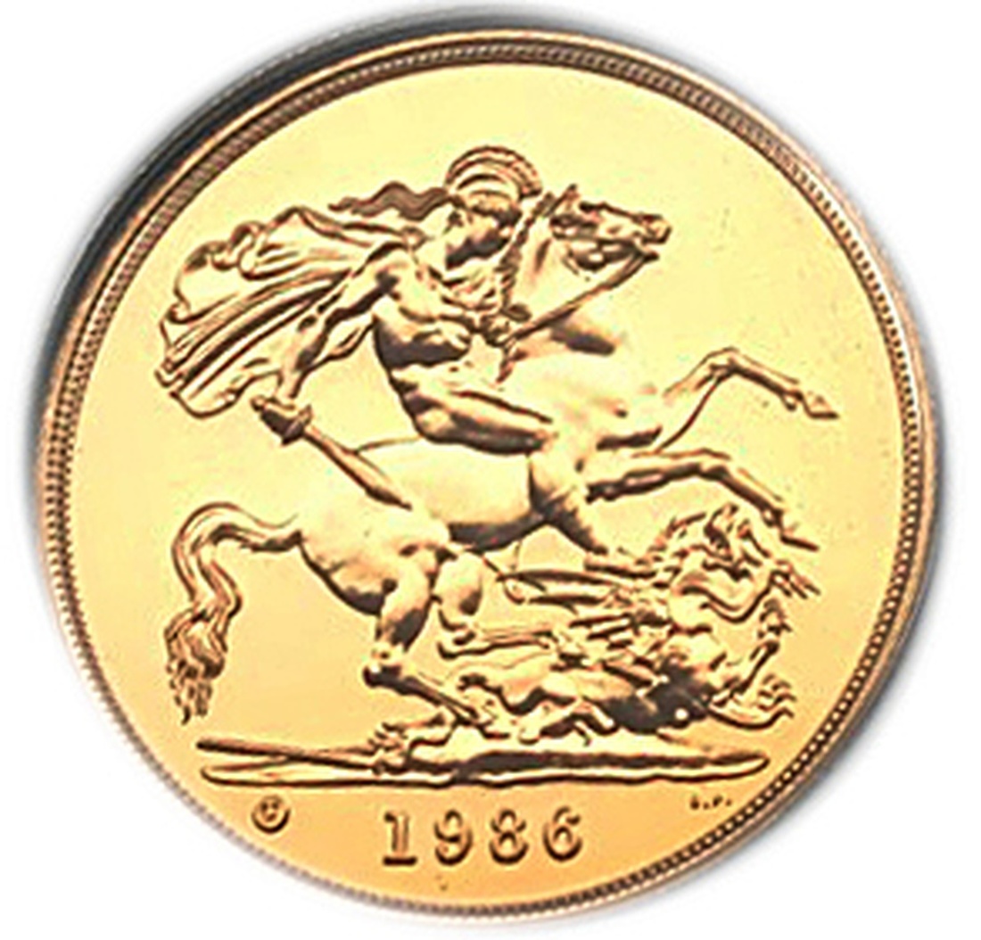 Great Britain. Elizabeth II (1952-). Proof 5 Pounds, 1986. Elizabeth II portrait by Raphael Maklouf right, rev. St. George. S.SE4, KM 945. In original RM case.