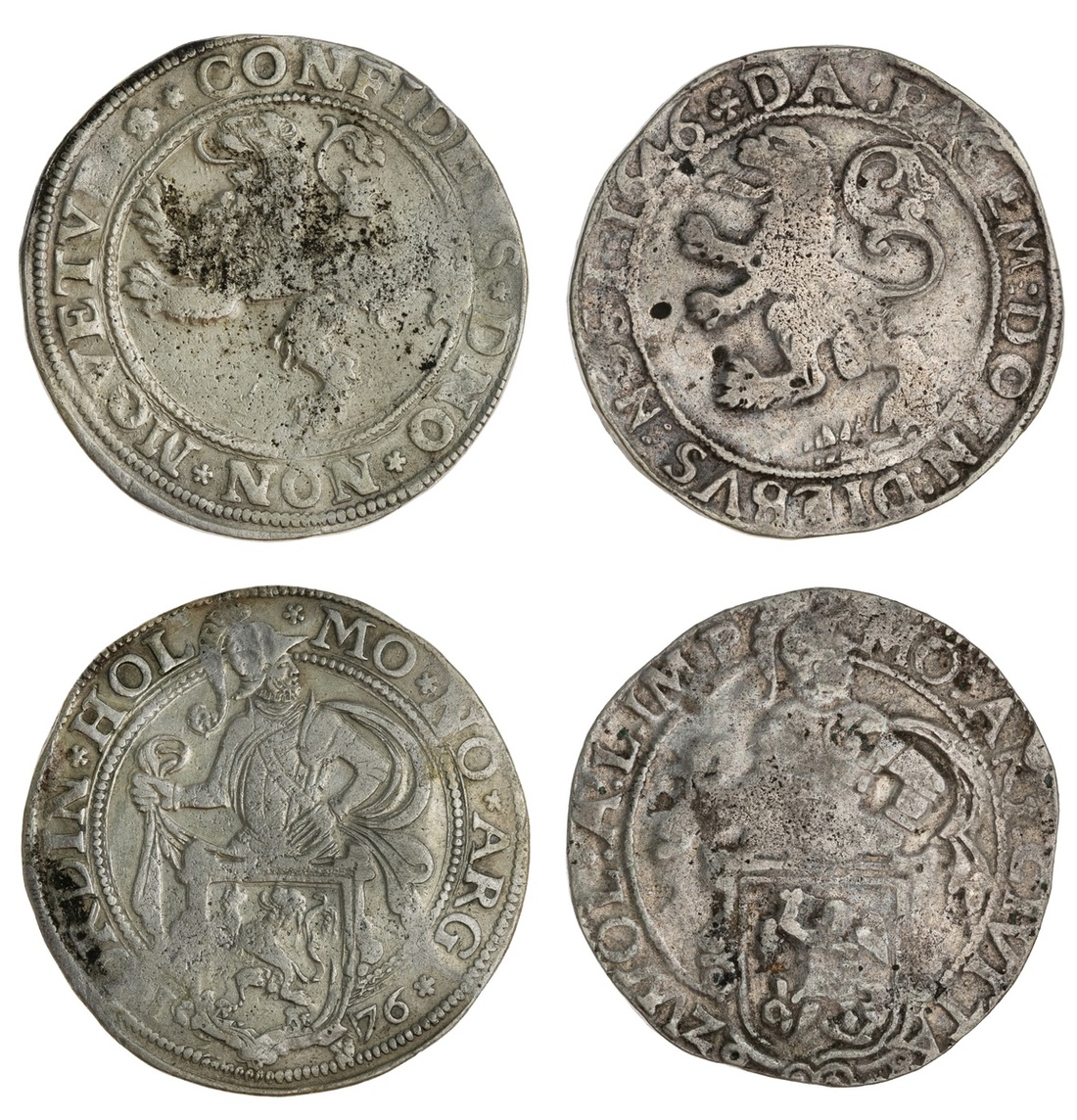 Netherlands. Pair of Leeuwendaalder - Lion Dollars. Holland 1576. Very Fine; and Zwolle, 1646. Crude VG-Fine. (2)