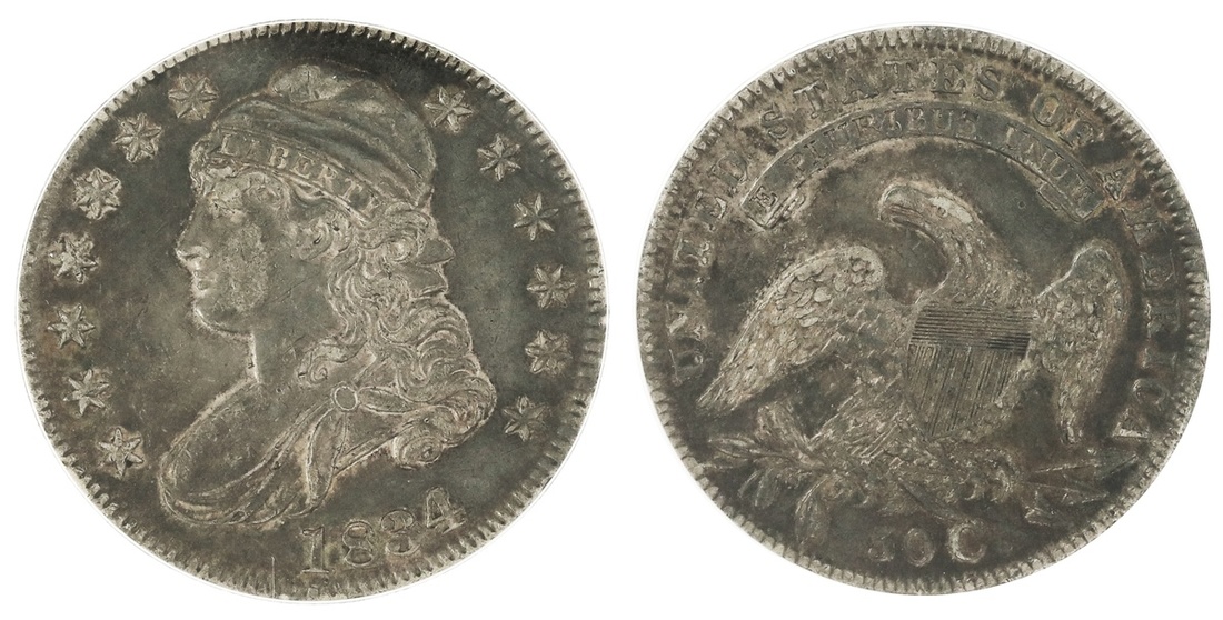 1834 Capped Bust Half Dollar Large Date, Small Letters. ANACS EF 45.