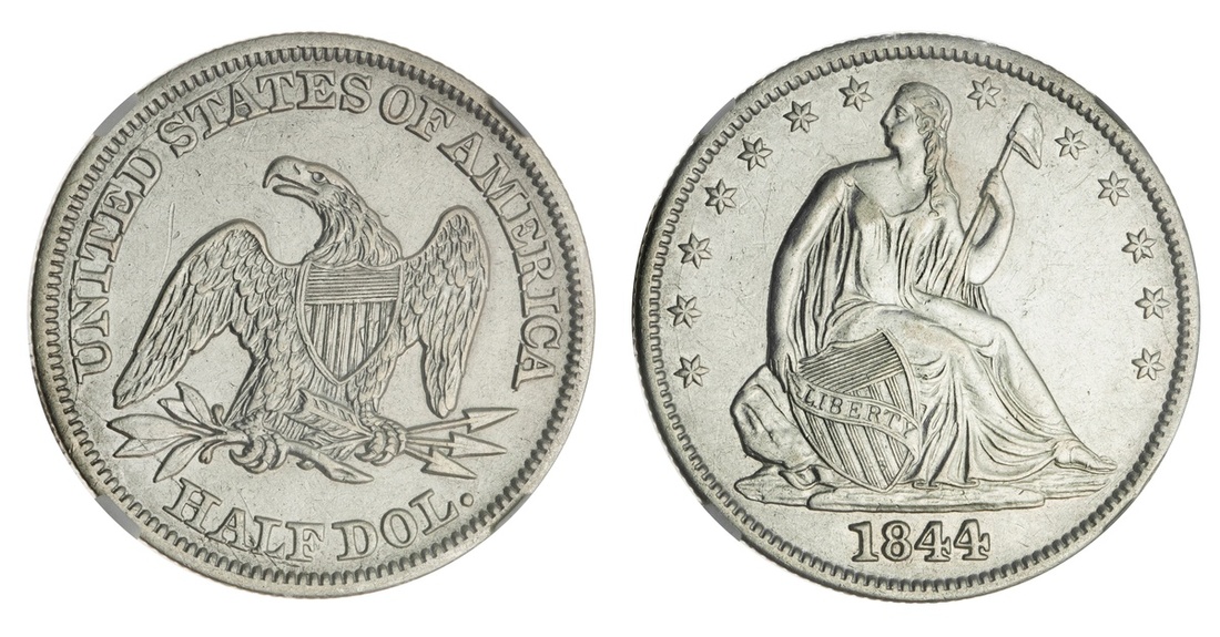 1844 Liberty Seated Half Dollar. NGC AU 50.