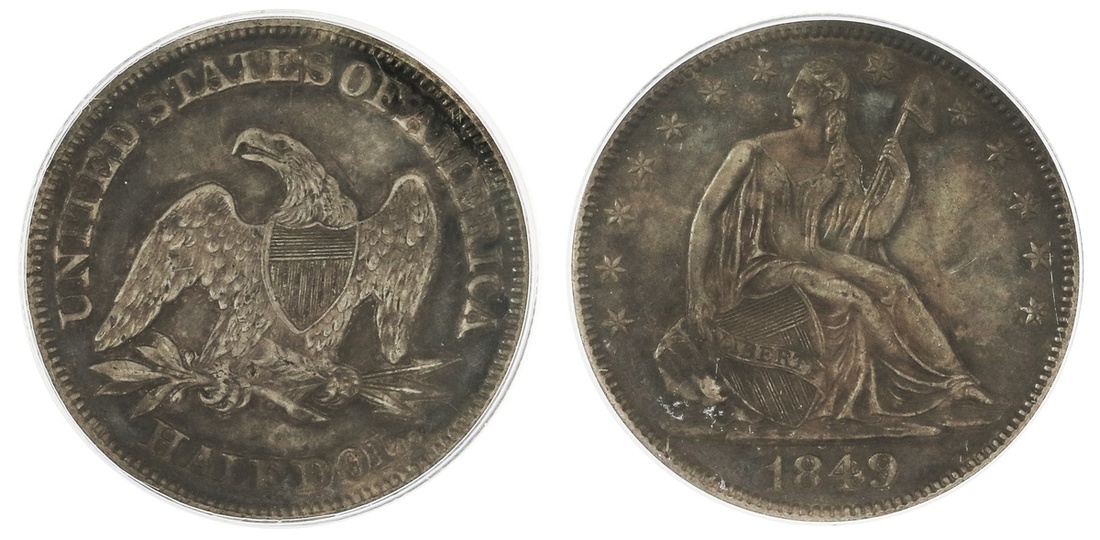 1849 Liberty Seated Half Dollar. PCGS AU 50.