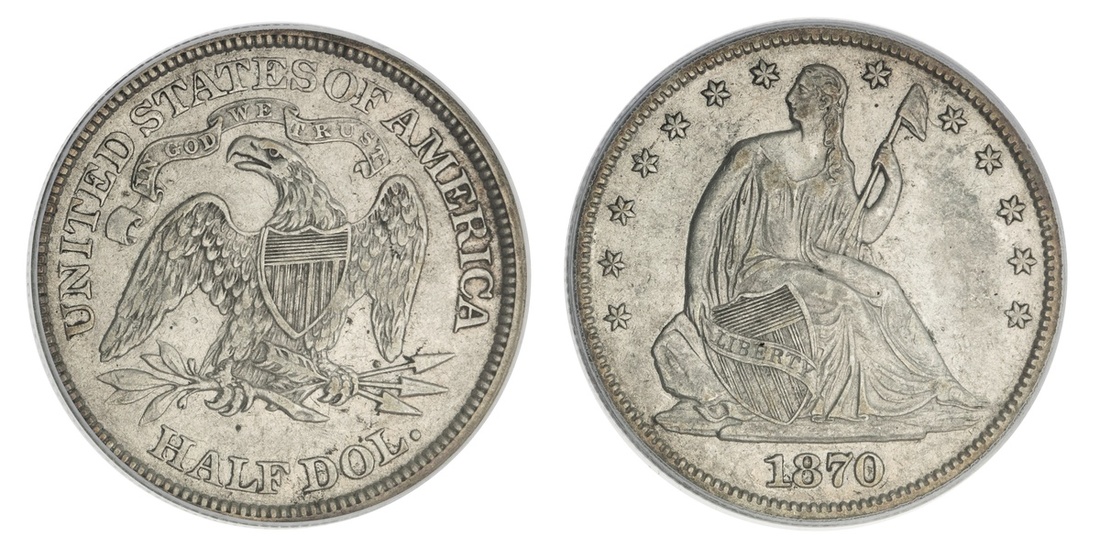 1870 Liberty Seated Half Dollar. PCGS XF 45.