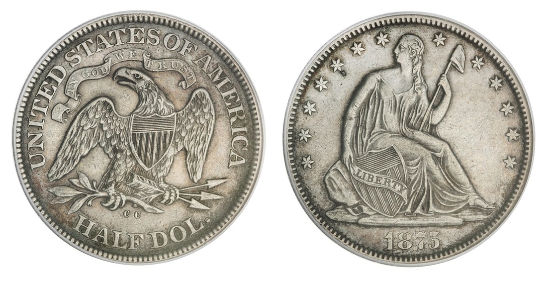 1875-CC Liberty Seated Half Dollar. Extremely Fine. Some obverse hairlines. In PCGS 'Genuine' holder.