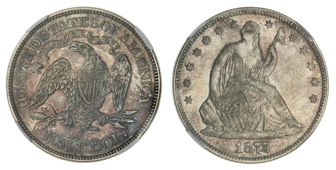 1875-S Liberty Seated Half Dollar. NGC AU 55.