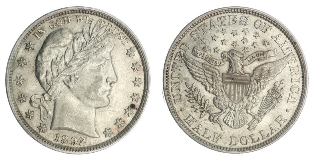 1892 Barber Half Dollar. PCGS AU 55. With CAC.
