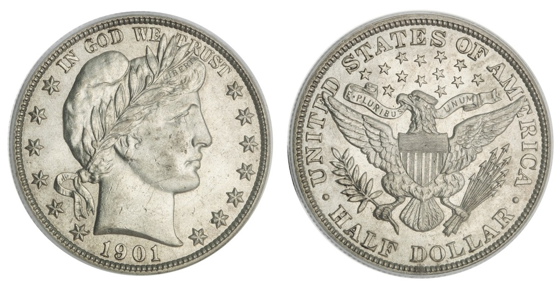 1901 Barber Half Dollar. PCGS AU 58.