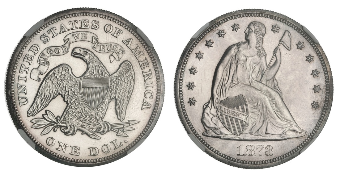 1873 Liberty Seated Dollar. NGC Proof Details - Improperly cleaned.