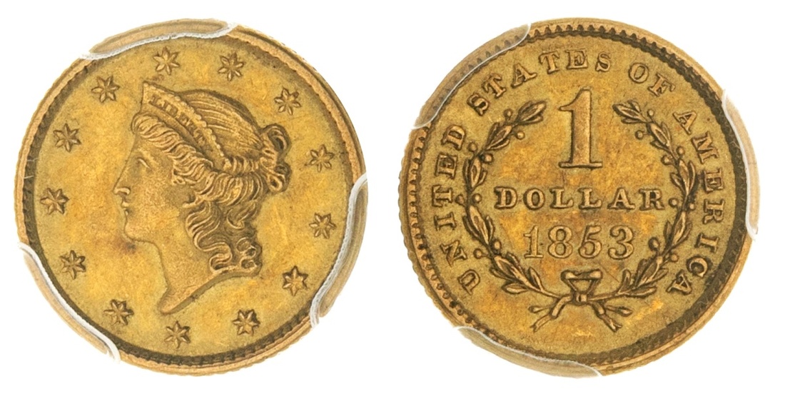 1853 $1 Gold. PCGS MS 61.