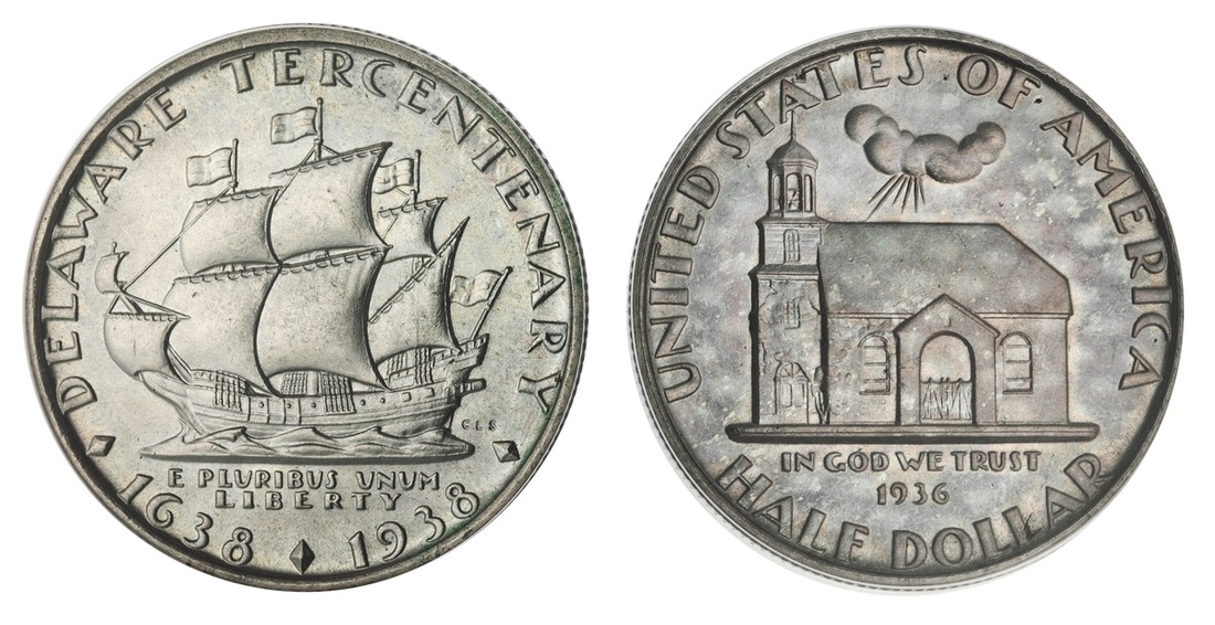1936 Delaware Half Dollar. ANACS MS 63. Pale iridescent hues. Choice BU.