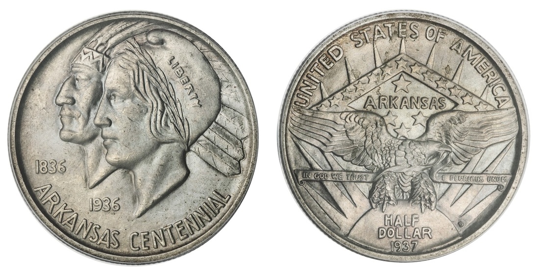 1937-S Arkansas Half Dollar. ANACS MS 63. Some light bagmarks, otherwise Choice BU.