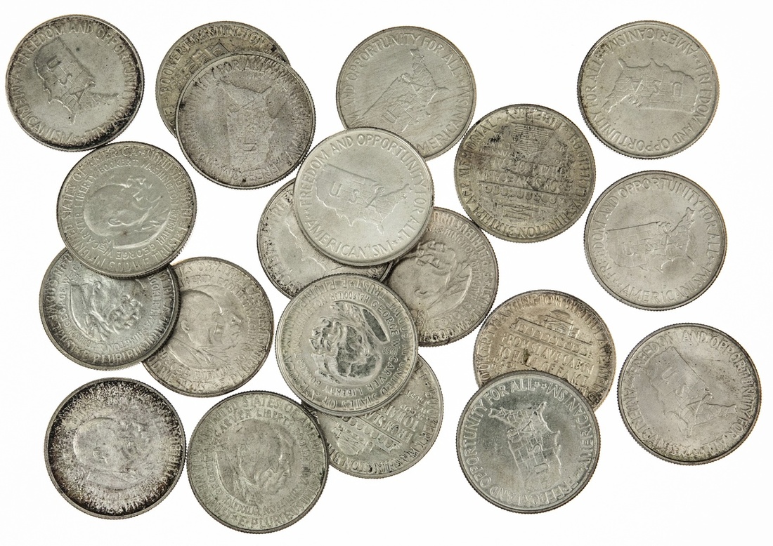 1951-1954 P, D, S Washington-Carver Half Dollars Complete. With three extra 1952, and one extra 1954-S; also 1946 P (2), D, S Booker T. Washington Half Dollars. EF-Unc. (20)