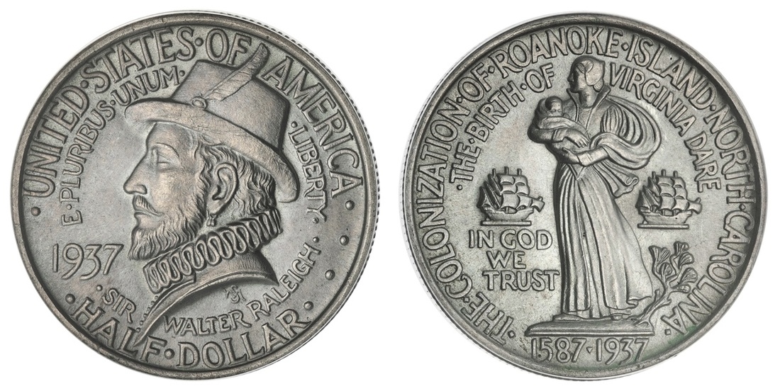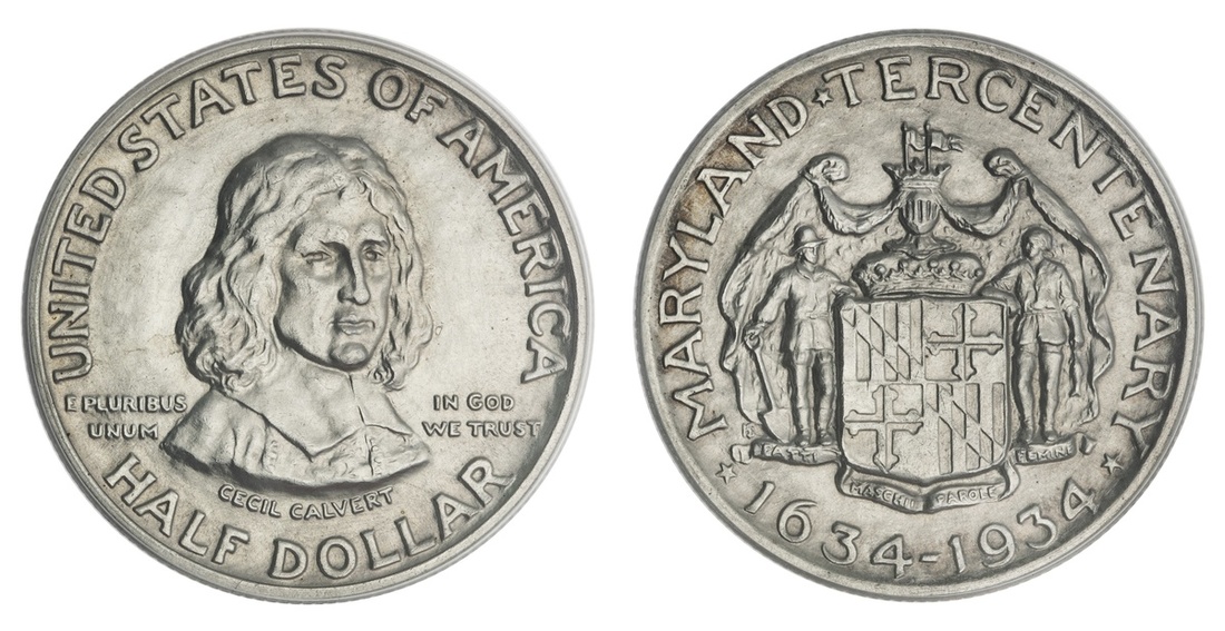 Pair of Commemorative Half Dollars -- 1934 Maryland; and 1937 Roanoke. Both ANACS MS 60 Details - Cleaned. (2).
