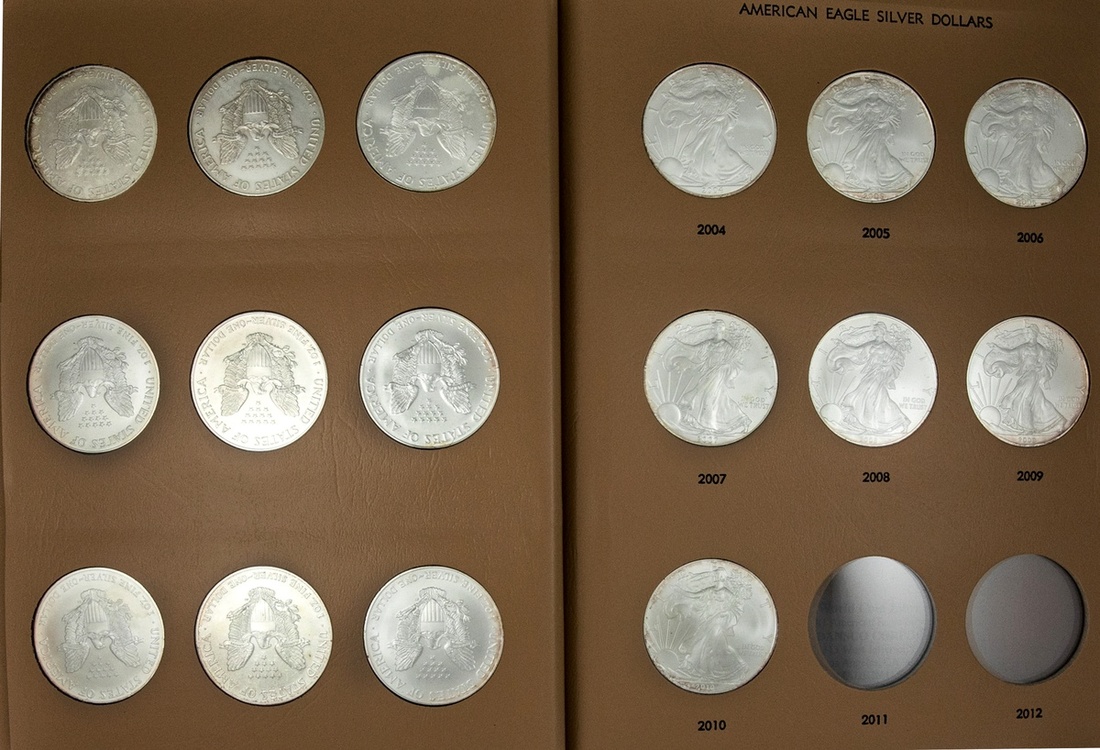 Silver Eagles, 1986-2010 Complete. BU House in Dansco album.