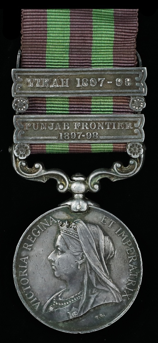 India General Service 1895-1908, 2 clasps, Punjab Frontier 1897-98, Tirah 1897-98 (2171 FAR J COLLICUTT 4TH DRAGOON GDS), contact marks, very fine.
