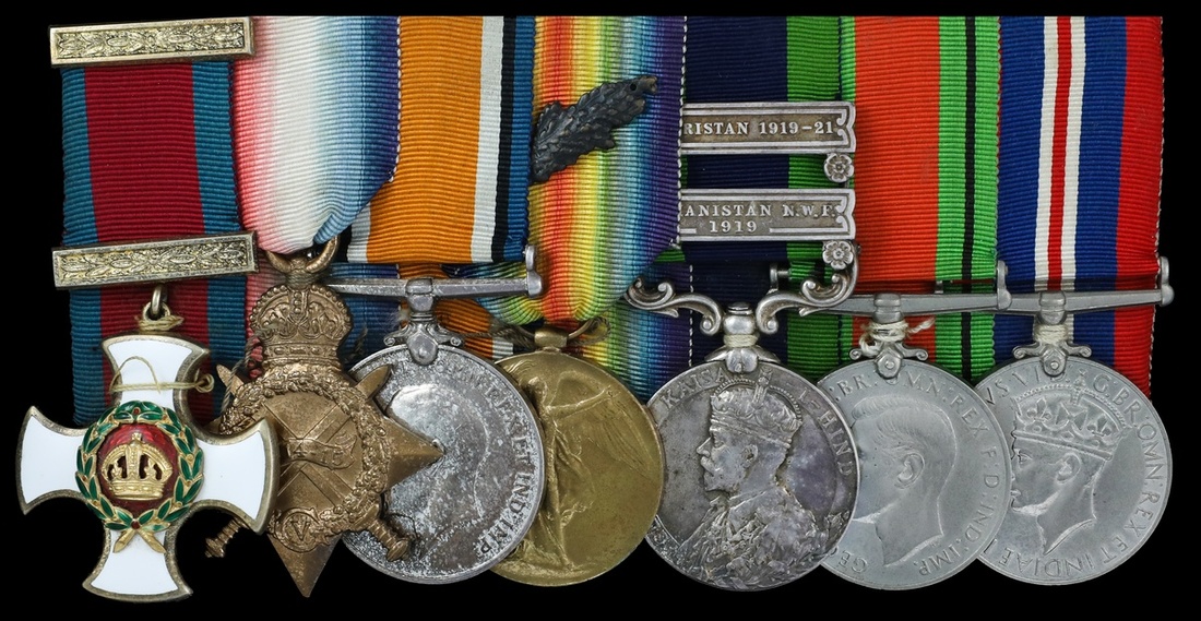 Distinguished Service Order, G.V.R.; 1914-15 Star; British War and Victory Medals, with M.I.D. oak leaves; India General Service Medal 1908-35, 2 clasps, Afghanistan N.W.F. 1919, Waziristan 1919-21; Defence and War Medals 1939-45, mounted court-style as worn, very fine (7)