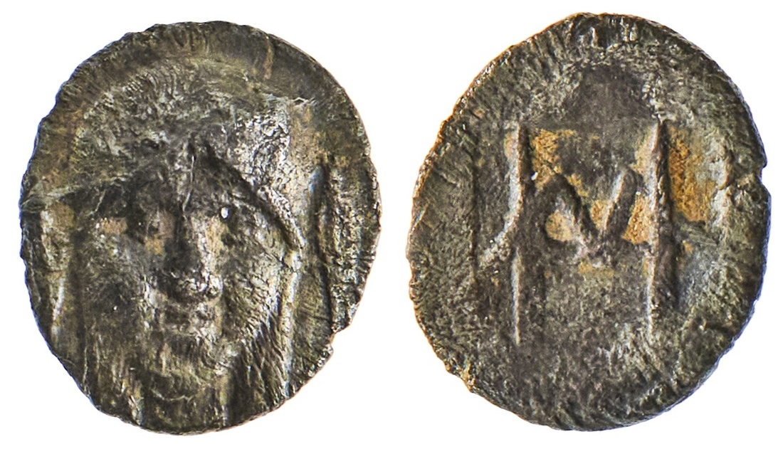 Ionia. Kolophon. AR Tetartemorion, 500-450 BC. 0.3 gms. Head of Apollo facing slightly right, rev. mH monogram in incuse square. Cf.Milne Colophon 4, Rosen 566. Rare. Toned. Very Fine.